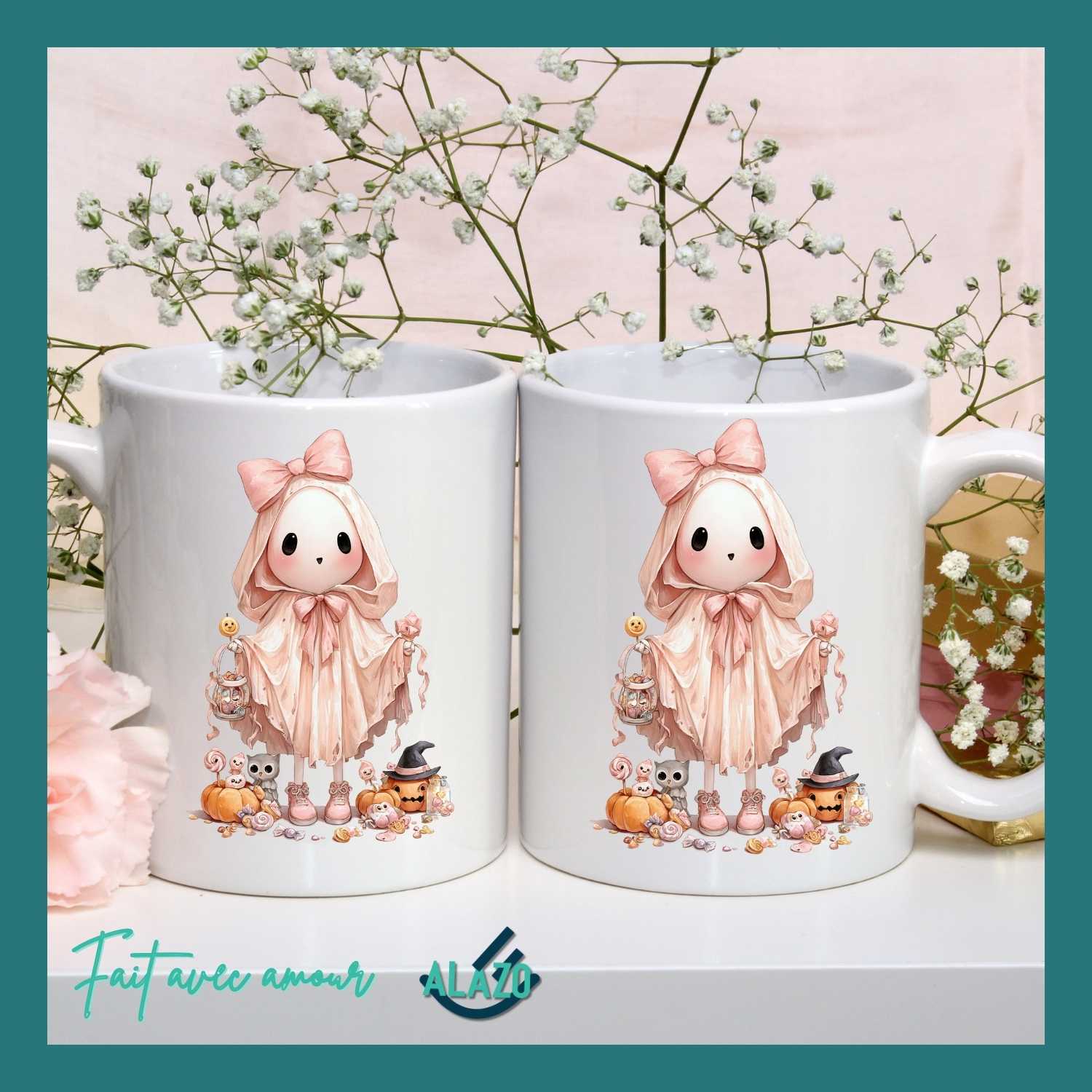 Un fantôme tendre et rigolo aux couleurs pastel, entouré de citrouilles et de lanternes. Ce mug de collection rend vos cafés et chocolats chauds encore plus gourmands. Qualité supérieure et impression durable.