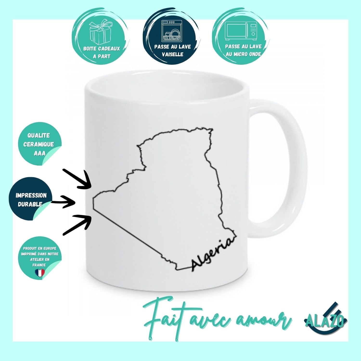 Caractéristiques du Mug Algérie Typo